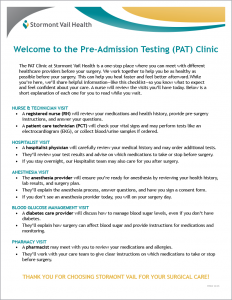 Pre-Admission Testing (PAT) Clinic Flyer