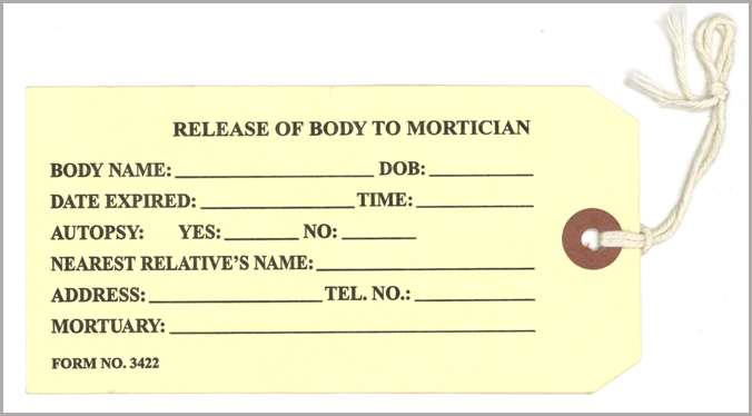 / 03422 Release of Body to Mortician tag, pkg of 25 / Page 1
