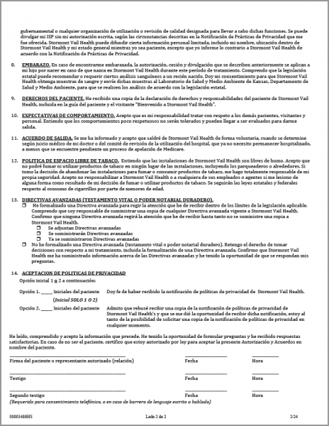 rev. 2/24; Spanish; 8.5″ x 11″ on paper stock; 2-sided, 5 holes in top.
