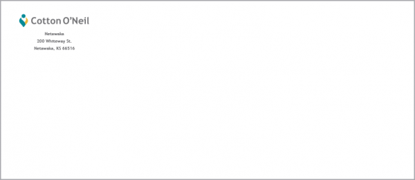 #10 envelope for Cotton O’Neil Clinic, North Clinic