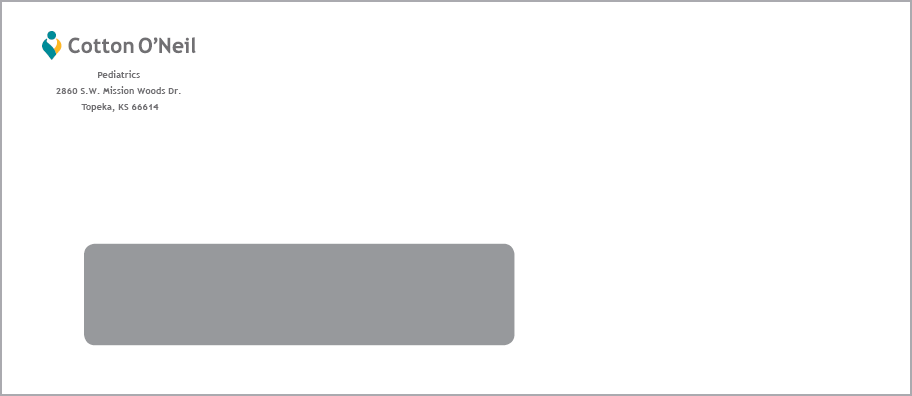 #10 left hand window envelop for Cotton O’Neil Pediatrics, 2860 S.W. Mission Woods Dr.