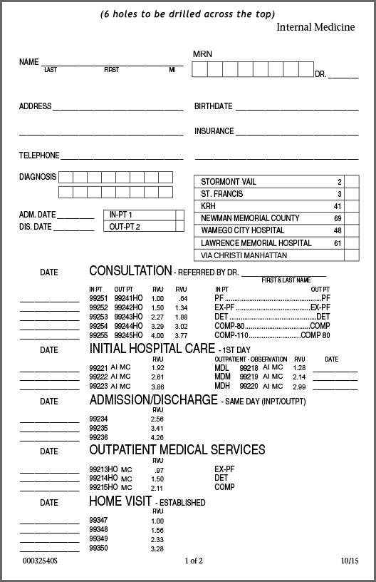 32540 Internal Medicine Hospital Card