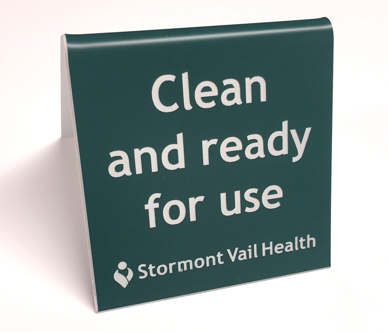 Flat 8×4, bent to 4 x 4 approx.; PMS 321 background, with text & logo.