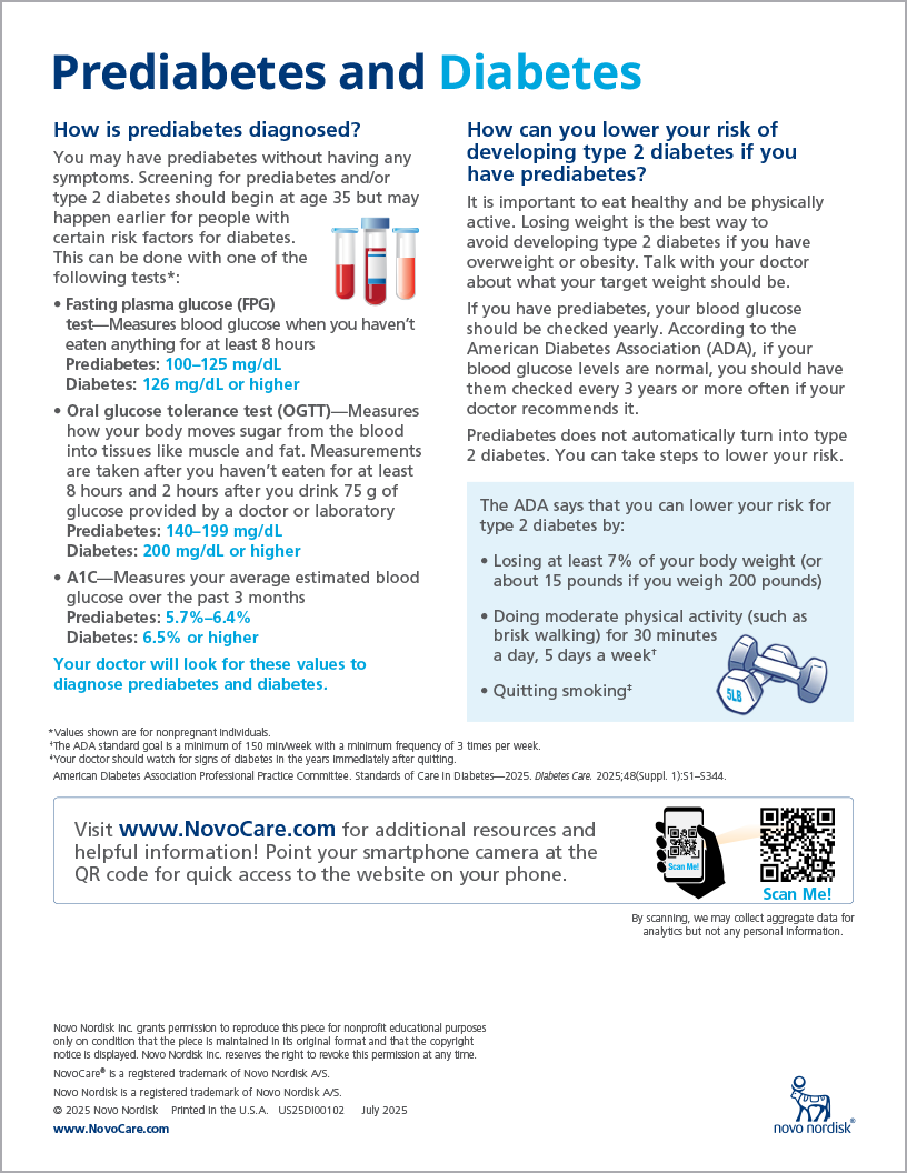 Prediabetes and Diabetes Novocare Handout. F0949