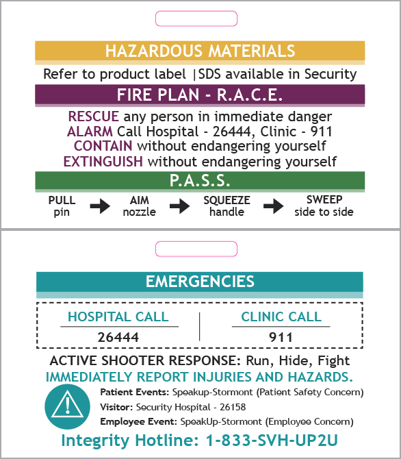 2-sided, 3.5″ x 2″, laminated, slot die cut in top for lanyard; exact size and position of slot may vary from this art. F0093